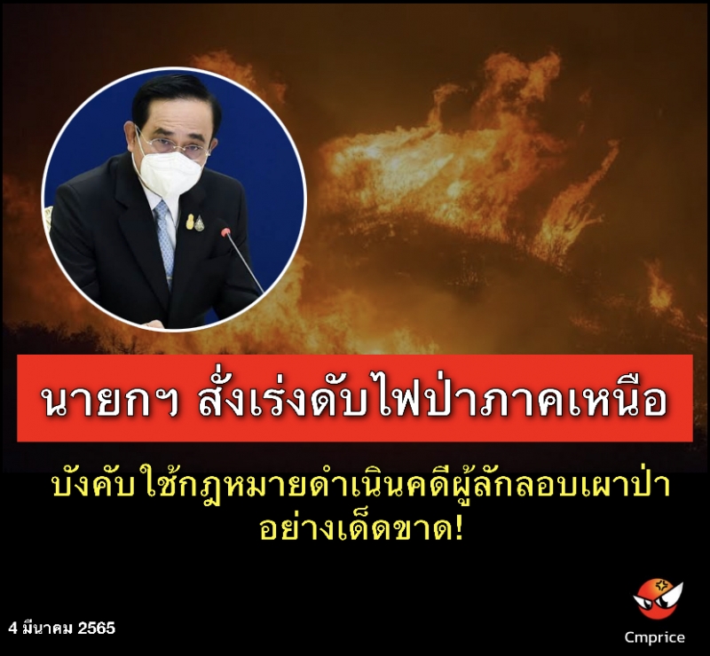 นายกฯ สั่งเร่งดับไฟป่าภาคเหนือ ไม่ให้ขยายสร้างความเสียหายในพื้นที่อื่น ๆ บังคับใช้กฎหมายดำเนินคดีผู้ลักลอบเผาป่าอย่างเด็ดขาด