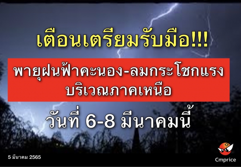 นายวรวิทย์ ชัยสวัสดิ์ รองผู้ว่าราชการจังหวัดเชียงใหม่ แจ้งวิทยุสื่อสารด่วน ภายหลังกองอำนวยการป้องกันและบรรเทาสาธารณภัยกลาง (กอปภ.ก) ได้ติดตามสถานการณ์ สภาวะอากาศ พิจารณาปัจจัยเสี่ยง กอปรกับกรมอุตุนิยมวิทยาได้มีประกาศฉบับที่ 1 (45/2565) ลงวันที่ 4 มีนาคม 2565 เวลา 05.00 น. แจ้งว่า ในช่วงวันที่ 6 – 8 มีนาคม 2565 บริเวณความกดอากาศสูงหรือมวลอากาศเย็นกำลังปานกลางจากสาธารณรัฐประชาชนจีนจะแผ่ลงมาปกคลุมประเทศไทยตอนบนและทะเลจีนใต้ ในขณะที่ประเทศไทยตอนบนจะมีพายุฤดูร้อนเกิดขึ้น โดยมีพายุฝนฟ้าคะนอง ลมกระโชกแรง และมีลูกเห็บตกบางพื้นที่รวมถึงมีฟ้าผ่าเกิดขึ้นด้วย โดยมีพื้นที่เฝ้าระวังสถานการณ์พายุฝนฟ้าคะนองและลมกระโชกแรง บริเวณ ภาคเหนือ ภาคตะวันออกเฉียงเหนือ ภาคกลาง รวมทั้งกรุงเทพมหานคร ระหว่างวันที่ 6-8 มีนาคม 2565