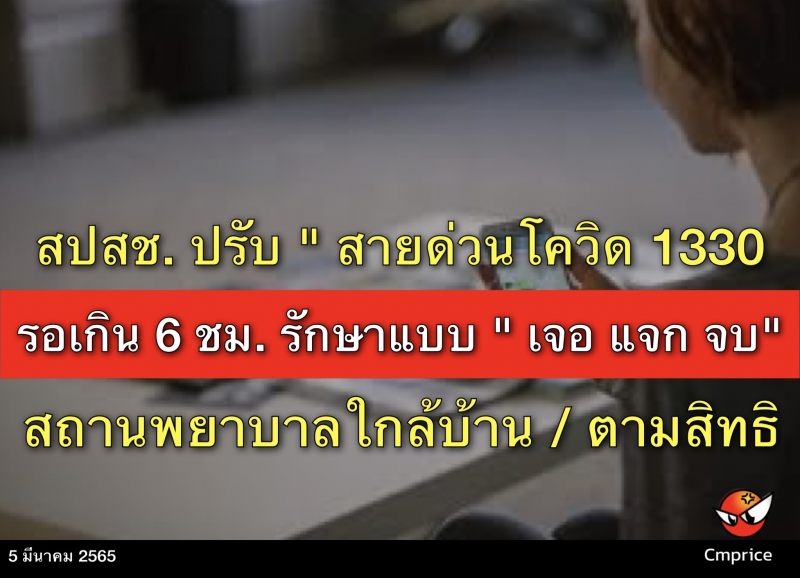 กระทรวงสาธารณสุข ปรับแนวทางการดูแลผู้ติดเชื้อโควิด-19 รูปแบบใหม่ คือ ให้การรักษาแบบผู้ป่วยนอกได้ ในส่วนของผู้ติดเชื้อโควิด-19 ที่ลงทะเบียนเข้าสู่ระบบการรักษาที่บ้านกับสายด่วน 1330 รวมถึงช่องทางไลน์และเว็บไซต์สปสช. หากยังไม่ได้รับการติดต่อกลับจากหน่วยบริการภายใน 6 ชั่วโมง ขอให้ดูแลตัวเองเบื้องต้นไปตามอาการ หากมีไข้หรือไอ กินยาลดไข้ ยาแก้ไอ ผู้ติดเชื้อโควิดสามารถไปโรงพยาบาลตามสิทธิรักษาหรือใกล้บ้าน