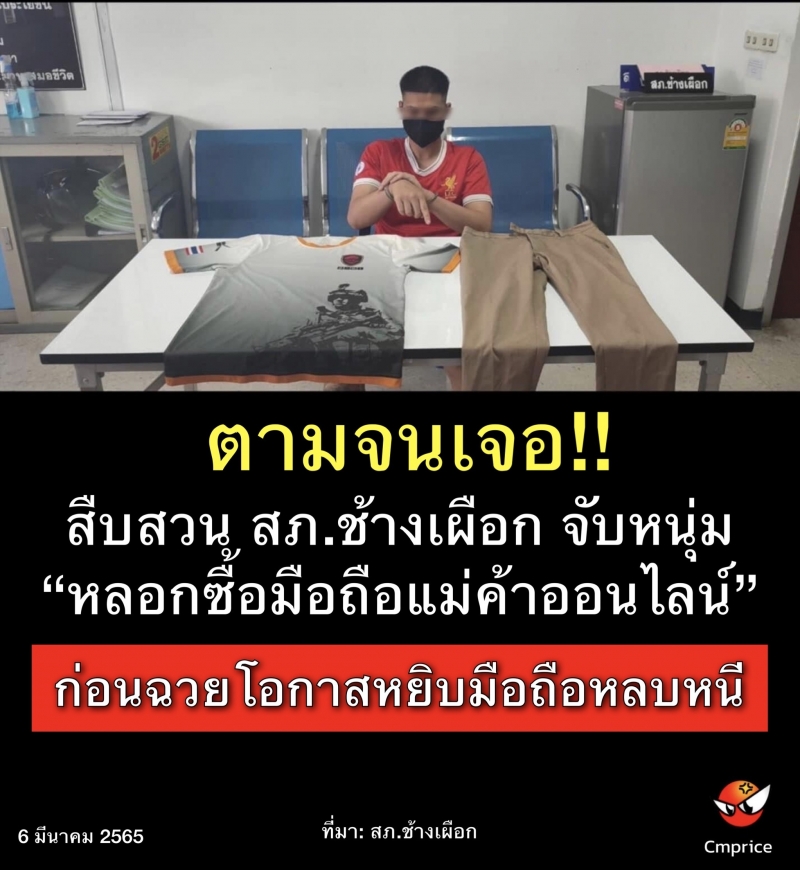 ตามจนเจอ!!สืบสวน สภ.ช้างเผือก จับหนุ่มหลอกขอซื้อมือถือแม่ค้าออนไลน์ ก่อนฉวยโอกาสหยิบมือถือหลบหนี