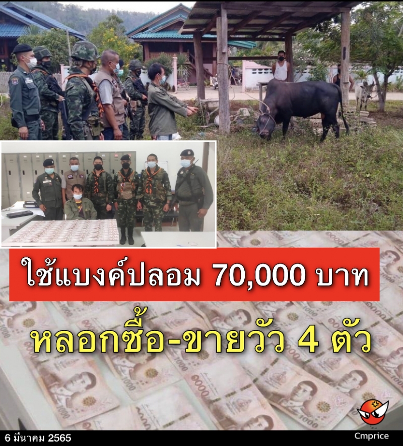 | • ใช้แบงค์ปลอม 70,000 บาท หลอกซื้อ-ขายวัว 4 ตัว |
