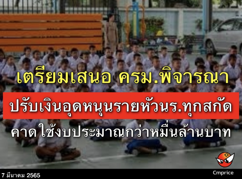 | • เตรียมเสนอ ครม.พิจารณาปรับเงินอุดหนุนรายหัวนักเรียนทุกสกัด คาดใช้งบประมาณกว่าหมื่นล้านบาท |