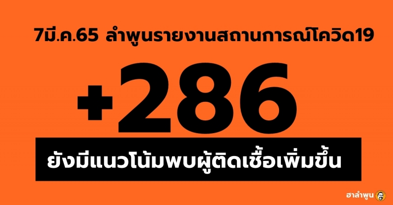 ลำพูนติดเชื้อเพิ่ม286ราย ยังมีแนวโน้มพบผู้ติดเชื้อเพิ่มขึ้น -7มี.ค.65