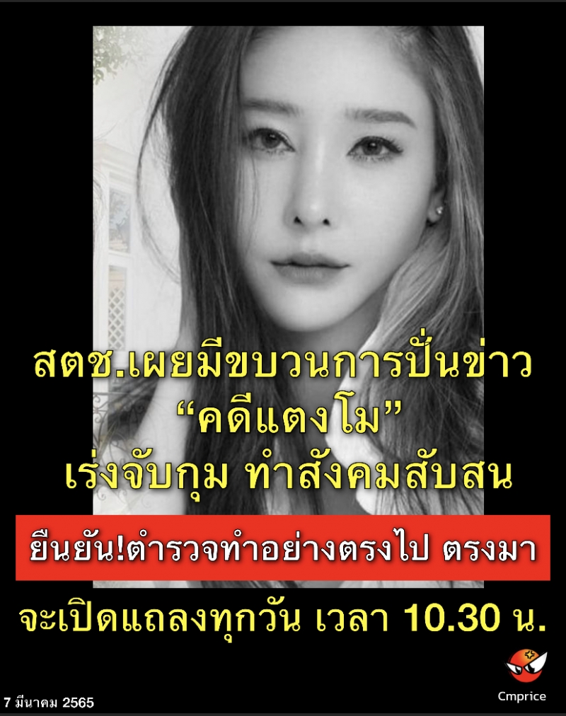 | • สตช.เผยมีขบวนการปั่นข่าว คดีแตงโม หวังอยู่ในกระแสสร้างชื่อ เร่งจับกุม ทำสังคมสับสน ยืนยัน!ตำรวจทำอย่างตรงไป ตรงมา จะเปิดแถลงทุกวัน เวลา 10.30 น. |