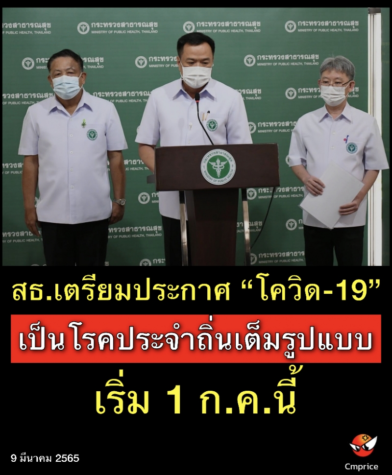 | • สธ.เตรียมประกาศ โควิด 19 เป็นโรคประจำถิ่นเต็มรูปแบบ เริ่ม 1 ก.ค.นี้ |