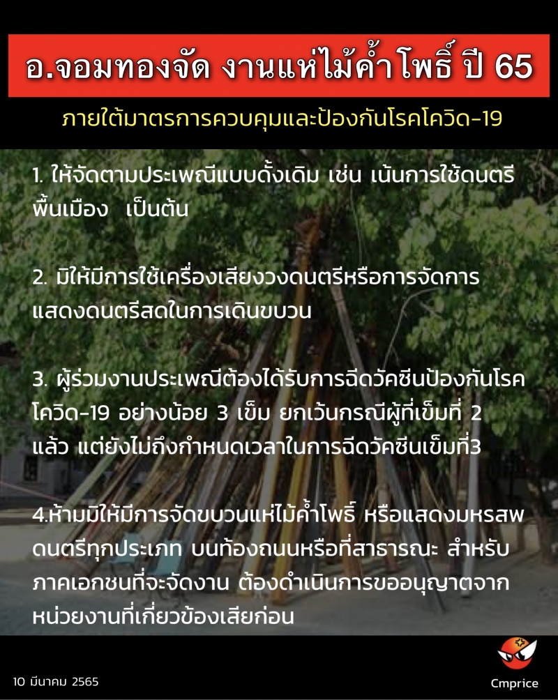 อ.จอมทองจัด งานแห่ไม้ค้ำโพธิ์ ปี 65 ภายใต้มาตรการควบคุมและป้องกันโรคโควิด-19