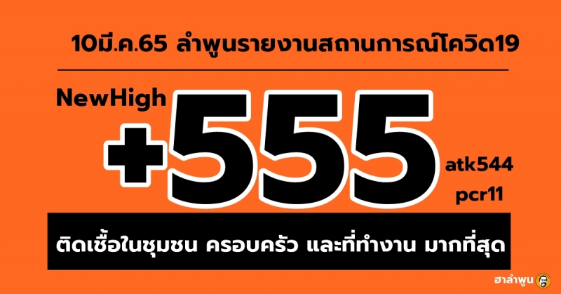 | • NewHigh! ลำพูนติดเชื้อ+555ราย ติดเชื้อในชุมชน ครอบครัว และที่ทำงาน มากที่สุด - 10มี.ค.65 |
