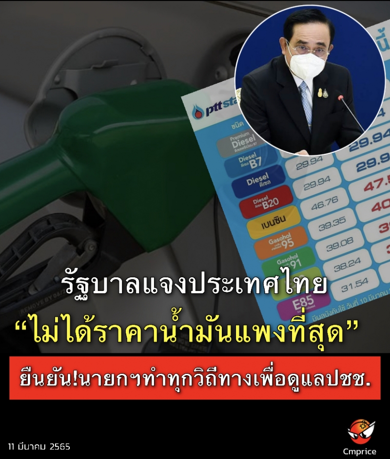 | • รัฐบาลแจงไทยไม่ได้ราคาน้ำมันแพงที่สุด ยืนยันนายกฯทำทุกวิถีทางเพื่อดูแลประชาชน |