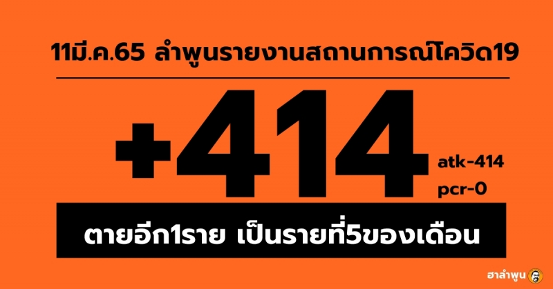 11 มี.ค.65 เพจศูนย์ข่าวโควิด 19 ลำพูน ได้รายงานสถานการณ์โควิด-19 จ.ลำพูน โดยเป็นข้อมูล ณ เมื่อวานนี้ เวลา 16.00น. พบผู้ติดเชื้อเพิ่ม 414ราย แบ่งเป็น