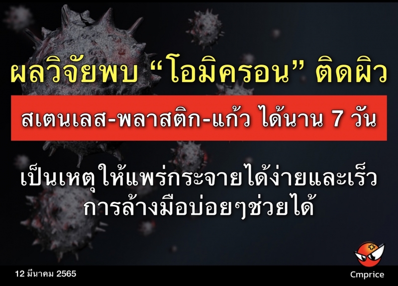 | • ผลวิจัยพบ โอมิครอนติด สเตนเลส พลาสติก แก้ว ได้นานถึง 7 วัน |