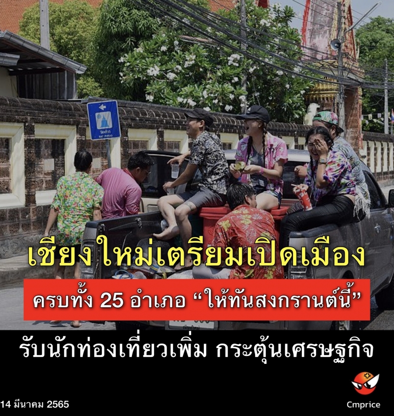 | • เชียงใหม่เตรียมเปิดเมืองครอบคลุมทั้ง 25 อำเภอให้ทันสงกรานต์นี้ รับนักท่องเที่ยวเพิ่มกระตุ้นเศรษฐกิจ |
