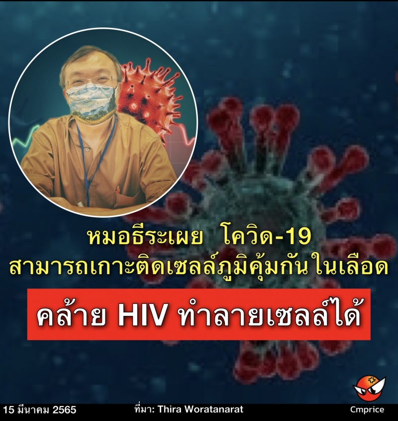 หมอธีระเผย โควิด-19 สามารถเกาะติดเซลล์ภูมิคุ้มกันในเลือด คล้าย HIV ทำลายเซลล์ได้
