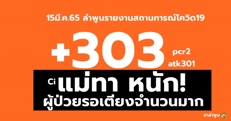 ลำพูนติดเชื้อเพิ่ม303ราย ,ci แม่ทา หนัก! -40เตียง ,ลี้เตียงเต็ม ,ciต้นธง-11เตียง (15มี.ค.65)