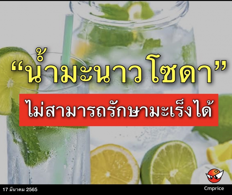 | • อย.ชี้ หยุด!! แชร์มั่ว น้ำมะนาวโซดา ไม่สามารถรักษามะเร็งได้ |