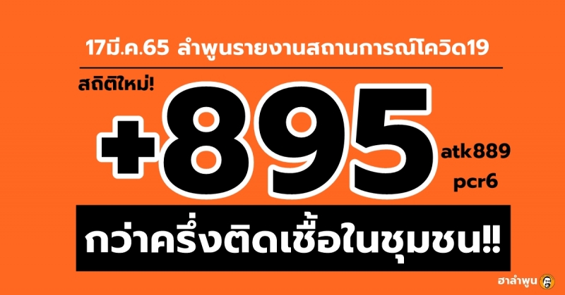17 มี.ค.65 เพจศูนย์ข่าวโควิด 19 ลำพูน ได้รายงานสถานการณ์โควิด-19 จ.ลำพูน โดยเป็นข้อมูล ณ เมื่อวานนี้ เวลา 16.00น. พบผู้ติดเชื้อเพิ่ม 895ราย แบ่งเป็น