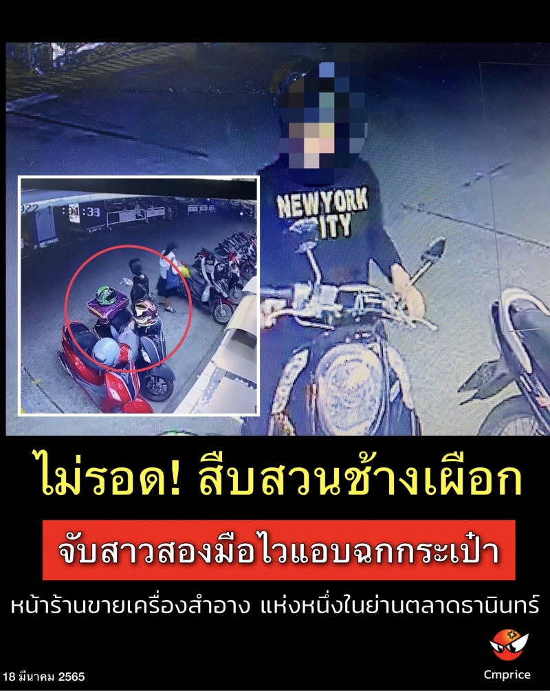 ไม่รอด! สืบสวนช้างเผือกจับสาวสองมือไวแอบฉกกระเป๋า หน้าร้านขายเครื่องสำอาง แห่งหนึ่งในย่านตลาดธานินทร์