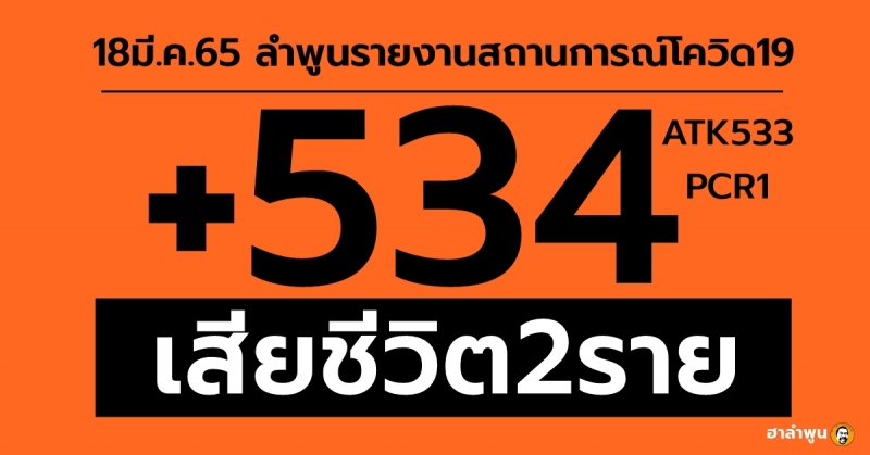 18มี.ค.65 เพจศูนย์ข่าวโควิด 19 ลำพูน ได้รายงานสถานการณ์โควิด-19 จ.ลำพูน โดยเป็นข้อมูล ณ เมื่อวานนี้ เวลา 16.00น. พบผู้ติดเชื้อเพิ่ม 534ราย แบ่งเป็น