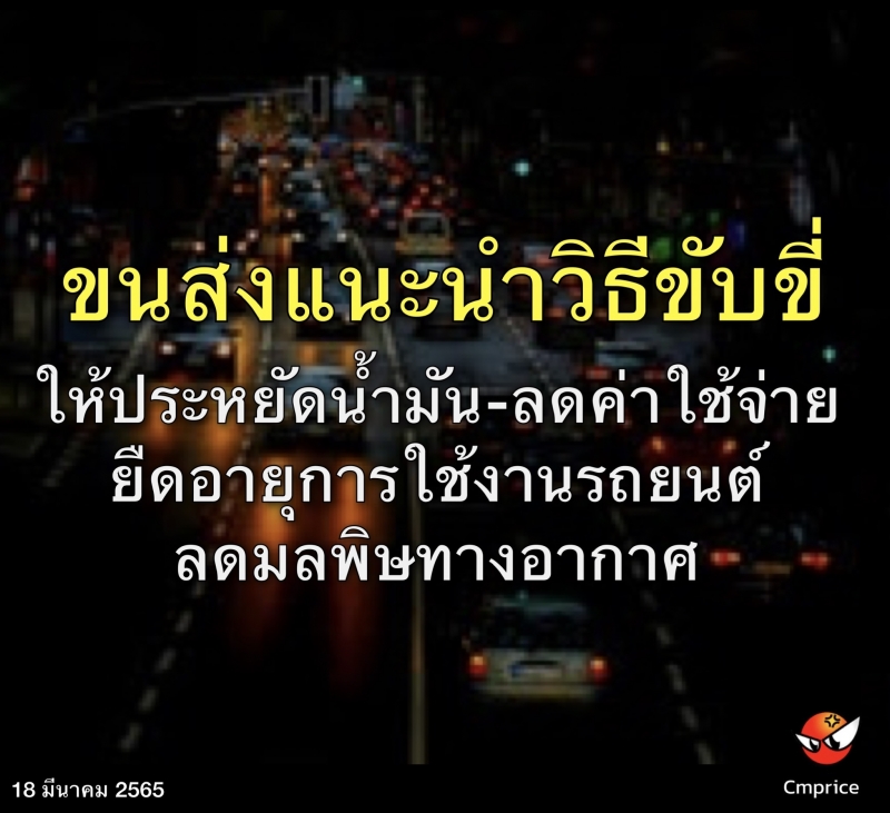 นายเสกสม อัครพันธุ์ รองอธิบดีกรมการขนส่งทางบก และโฆษกกรมการขนส่งทางบก เปิดเผยว่า เพื่อรับมือกับสถานการณ์ราคาน้ำมันที่ปรับตัวสูงขึ้น กรมการขนส่งทางบกขอแนะนำวิธีขับขี่รถที่จะช่วยประหยัดพลังงาน ลดภาระค่าใช้จ่ายและเป็นวิธีง่ายๆ ที่เจ้าของรถสามารถทำได้ทันที เช่น ควรใช้ความเร็วคงที่ประมาณ 80 - 90 กิโลเมตร/ชั่วโมง และควรใช้เกียร์ที่เหมาะสมเพื่อมิให้รอบเครื่องยนต์สูงเกินไป ไม่ควรเบิ้ล กระชาก ลากเครื่องยนต์ จะทำให้น้ำมันเชื้อเพลิงถูกฉีดเข้าห้องเผาไหม้มากยิ่งขึ้น นอกจากสิ้นเปลืองแล้ว ยังทำให้เกิดการเผาไหม้ที่ไม่สมบูรณ์เกิดเป็นมลพิษ หรือในกรณีเครื่องยนต์ดีเซลก็จะทำให้เกิดควันดำ เพิ่มปริมาณฝุ่น PM2.5 ในอากาศอีกด้วย และไม่ควรเร่งรถหรือเบรกกะทันหัน หมั่นเติมลมยางตามกำหนดที่คู่มือรถแนะนำ บรรทุกสัมภาระเท่าที่จำเป็น ดังนั้น หากมีสัมภาระที่ไม่จำเป็นก็ควรจะนำออกจากรถ