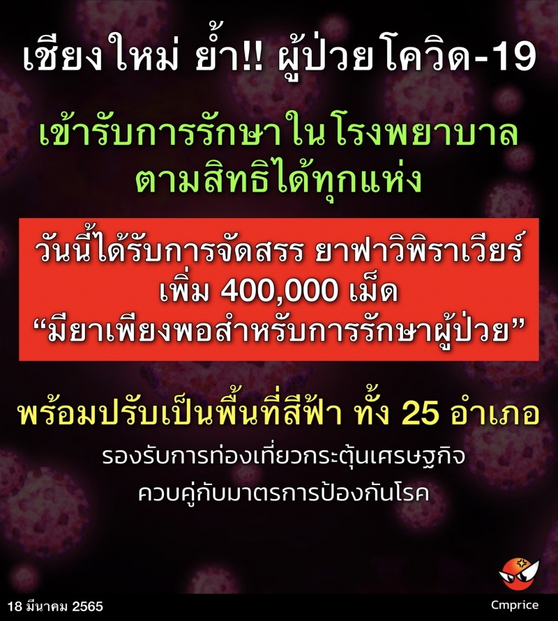 | • เชียงใหม่ ย้ำ ผู้ป่วยโควิด เข้ารับการรักษาในโรงพยาบาลตามสิทธิได้ทุกแห่ง |