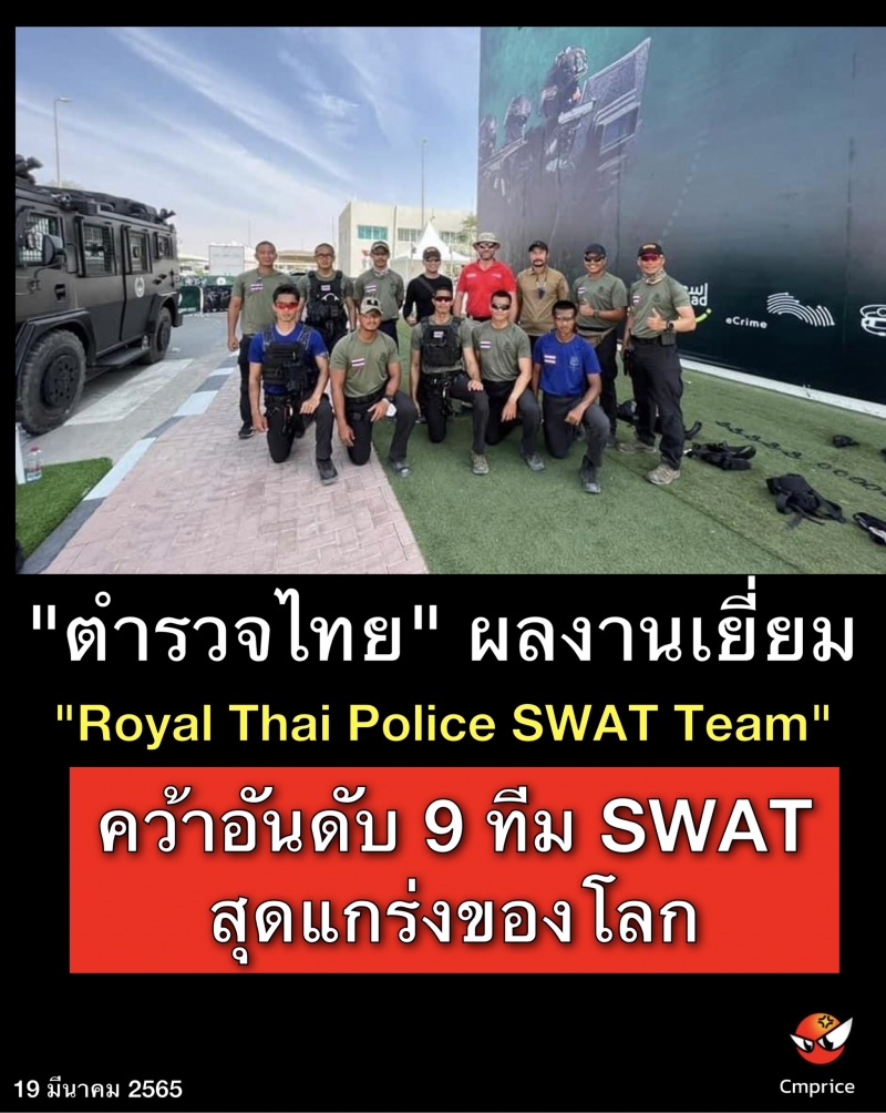 ทีมตำรวจไทย "Royal Thai Police SWAT Team" ทำผลงานได้ยอดเยี่ยม คว้าอันดับ 9 สุดยอดทีมตำรวจสุดแกร่งของโลก ในการแข่งขัน UAE SWAT Challenge 2022 ณ นครดูไบ ประเทศสหรัฐอาหรับเอมิเรตส์ ระหว่งวันที่ 13-17 มีนาคม 65