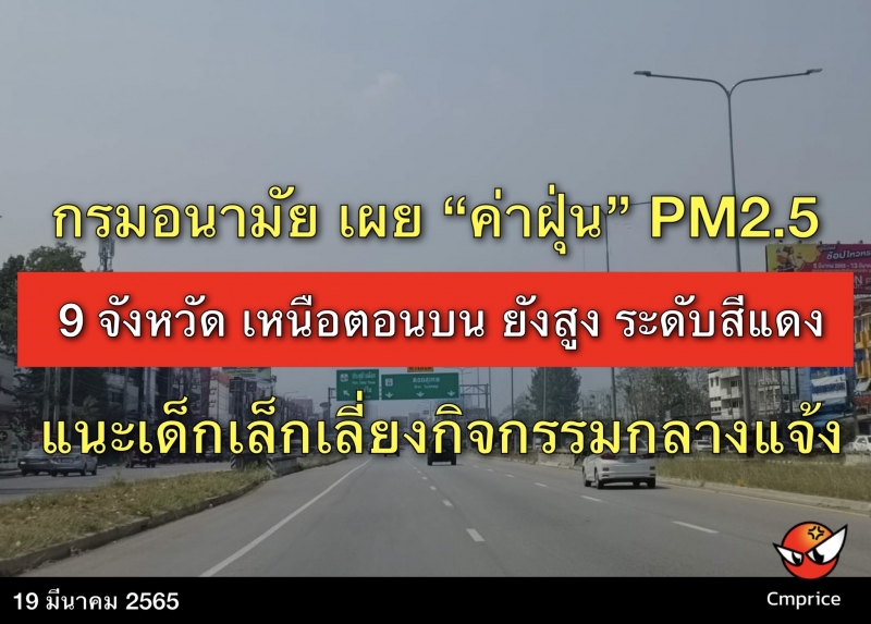 กรมอนามัย กระทรวงสาธารณสุข เผย ค่าฝุ่นละอองขนาดเล็ก PM2.5 ในพื้นที่ภาคเหนือตอนบน เกินมาตรฐาน สูงระดับสีแดง แนะช่วงปิดเทอม พ่อแม่ ผู้ปกครองในพื้นที่ประสบปัญหาฝุ่นละอองขนาดเล็ก ต้องดูแลเด็กให้เลี่ยงทำกิจกรรมกลางแจ้ง เพื่อป้องกันความเสี่ยงผลกระทบต่อสุขภาพ