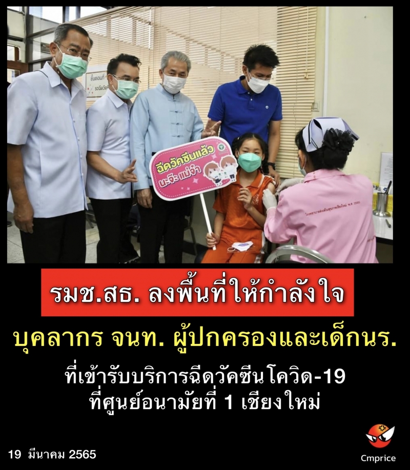 รัฐมนตรีช่วยว่าการกระทรวงสาธารณสุข ลงพื้นที่ให้กำลังใจบุคลากร เจ้าหน้าที่ ผู้ปกครองและเด็กนักเรียน ที่เข้ารับบริการฉีดวัคซีนโควิด-19 ที่ศูนย์อนามัยที่ 1 เชียงใหม่ พร้อมขอความร่วมมืองผู้ปกครองช่วยกันนำผู้สูงอายุที่บ้านมารับการฉีดวัคซีนเข็มที่ 3 เพื่อลดอาการป่วยรุนแรงและเสียชีวิตหากติดเชื้อ