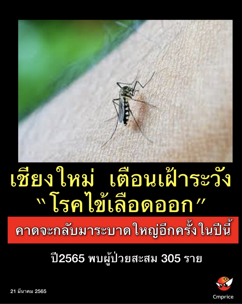 จังหวัดเชียงใหม่ เตือนประชาชนเฝ้าระวังโรคไข้เลือดออก คาดจะกลับมาระบาดใหญ่อีกครั้งในปีนี้ หลังพบปริมาณฝนเพิ่มขึ้น