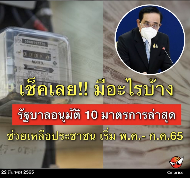 | • เช็คเลย!! รัฐบาลอนุมัติ 10 มาตรการล่าสุด ช่วยเหลือประชาชน เริ่ม พ.ค.- ก.ค.65 มีอะไรบ้าง |