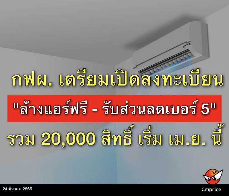 กฟผ. เตรียมเปิดลงทะเบียน “ล้างแอร์ฟรี - ส่วนลดเครื่องใช้ไฟฟ้าเบอร์ 5” รวม 20,000 สิทธิ์ เริ่ม เม.ย. นี้ ชวนคนไทยร่วมใจประหยัดพลังงานรับมือวิกฤตราคาพลังงานขาขึ้น