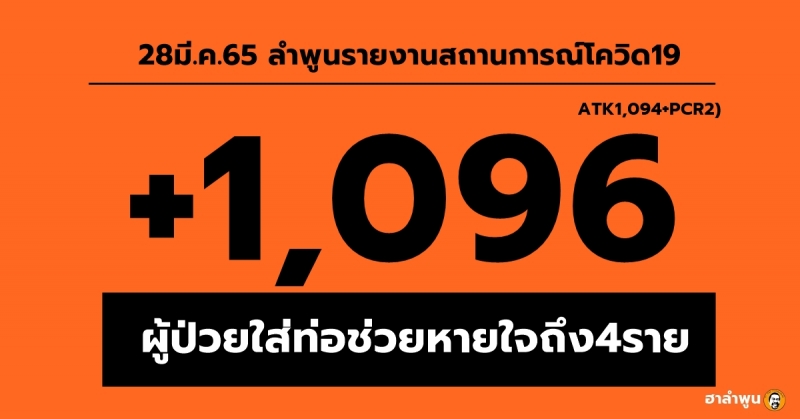 ลำพูนติดเชื้อเพิ่ม1,096ราย ผู้ป่วยใส่ท่อช่วยหายใจถึง4ราย (28มี.ค.65)