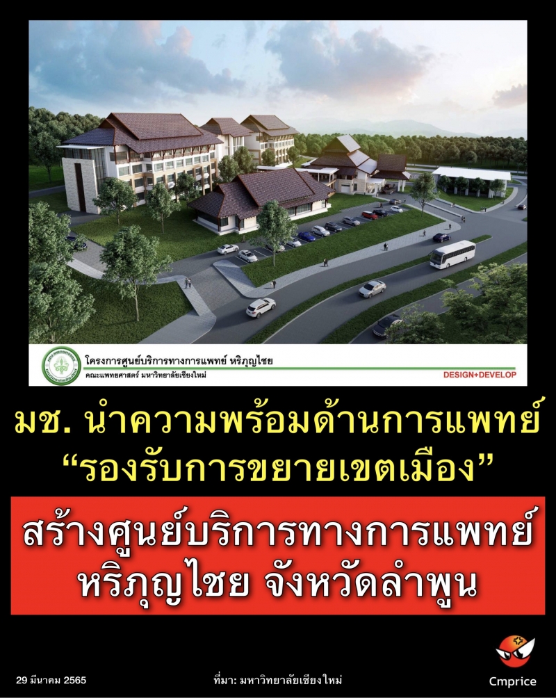 | • มช. นำความพร้อมด้านการแพทย์ รองรับการขยายเขตเมือง สร้างศูนย์บริการทางการแพทย์หริภุญไชย จังหวัดลำพูน |