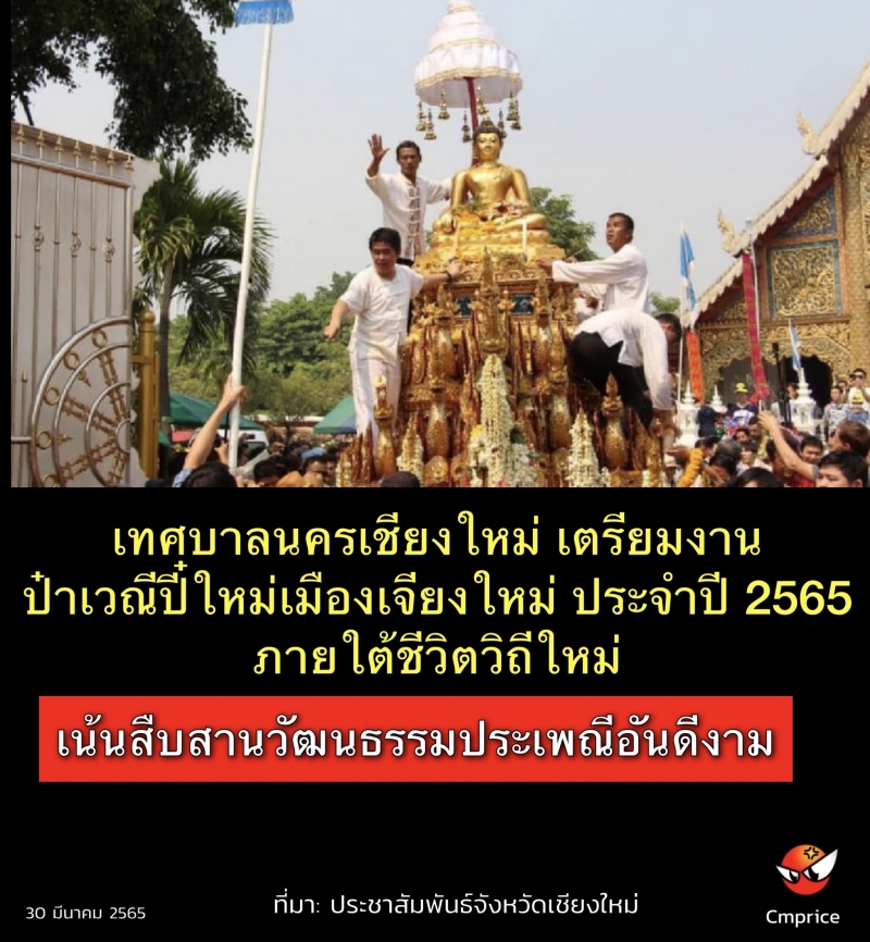 | • เทศบาลนครเชียงใหม่ เตรียมงานประเพณีสงกรานต์ (ป๋าเวณีปี๋ใหม่เมืองเจียงใหม่) ประจำปี 2565 ภายใต้ชีวิตวิถีใหม่ เน้นสืบสานวัฒนธรรมประเพณีอันดีงามตามอัตลักษณ์ของชาวล้านนา |