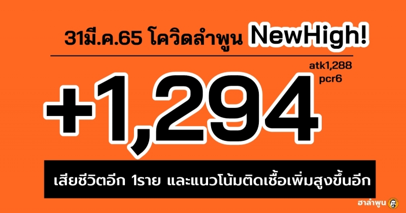 | • NewHigh! ลำพูนติดเชื้อ1,294ราย เสียชีวิต1ราย และแนวโน้มพบผู้ติดเชื้อสูงขึ้น - 31มี.ค.65 |