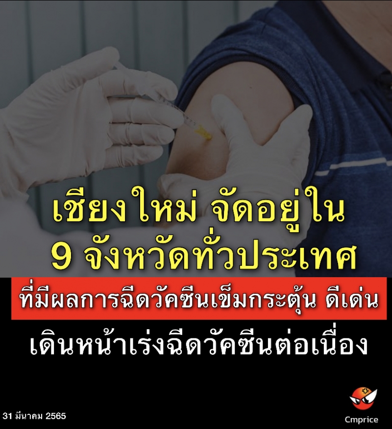 เชียงใหม่ จัดอยู่ใน 9 จังหวัดทั่วประเทศที่มีผลการฉีดวัคซีนเข็มกระตุ้น ดีเด่น