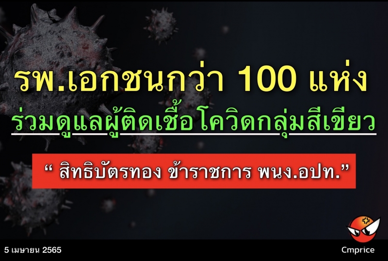 | • โรงพยาบาลเอกชนกว่า 100 แห่ง ร่วมดูแลผู้ติดเชื้อโควิดกลุ่มสีเขียว สิทธิบัตรทอง ข้าราชการ พนักงาน อปท. |