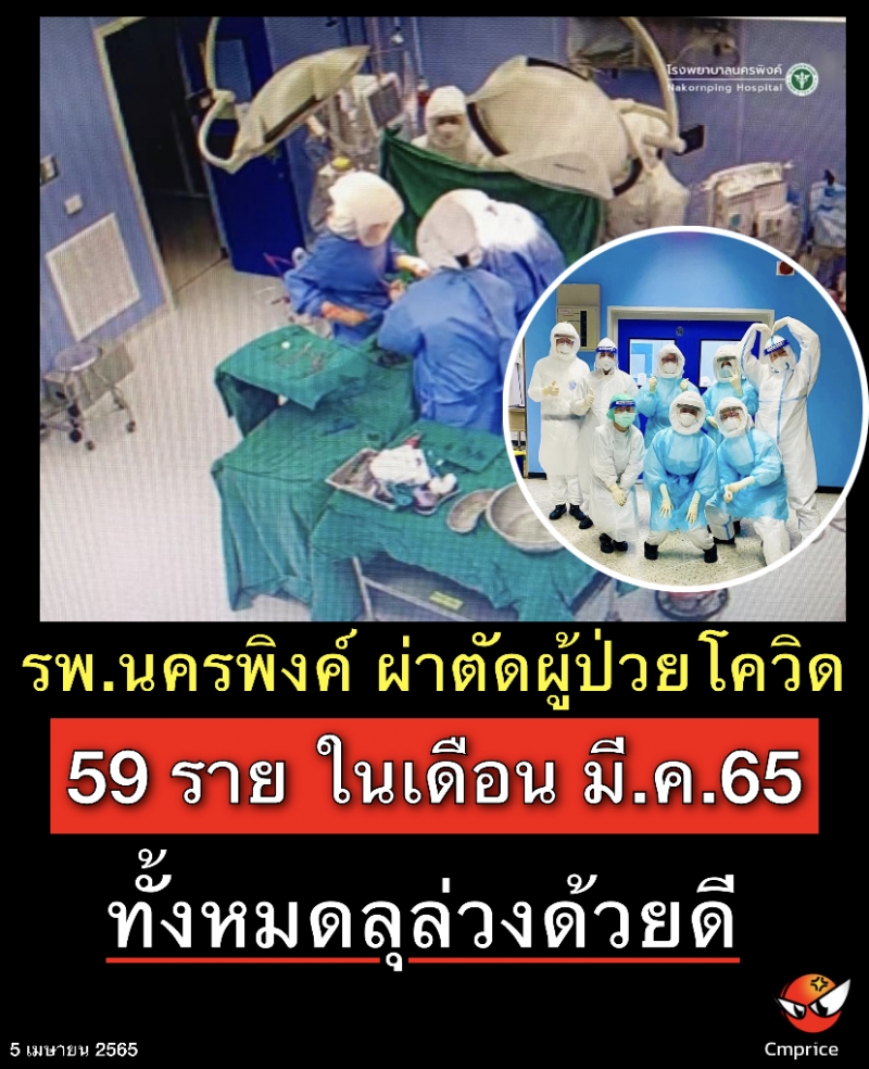 ในเดือนมีนาคม 2565 ที่ผ่านมา โรงพยาบาลนครพิงค์ได้ทำการผ่าตัดผู้ป่วยโควิดไปทั้งหมด 59 ราย โดยแบ่งเป็น