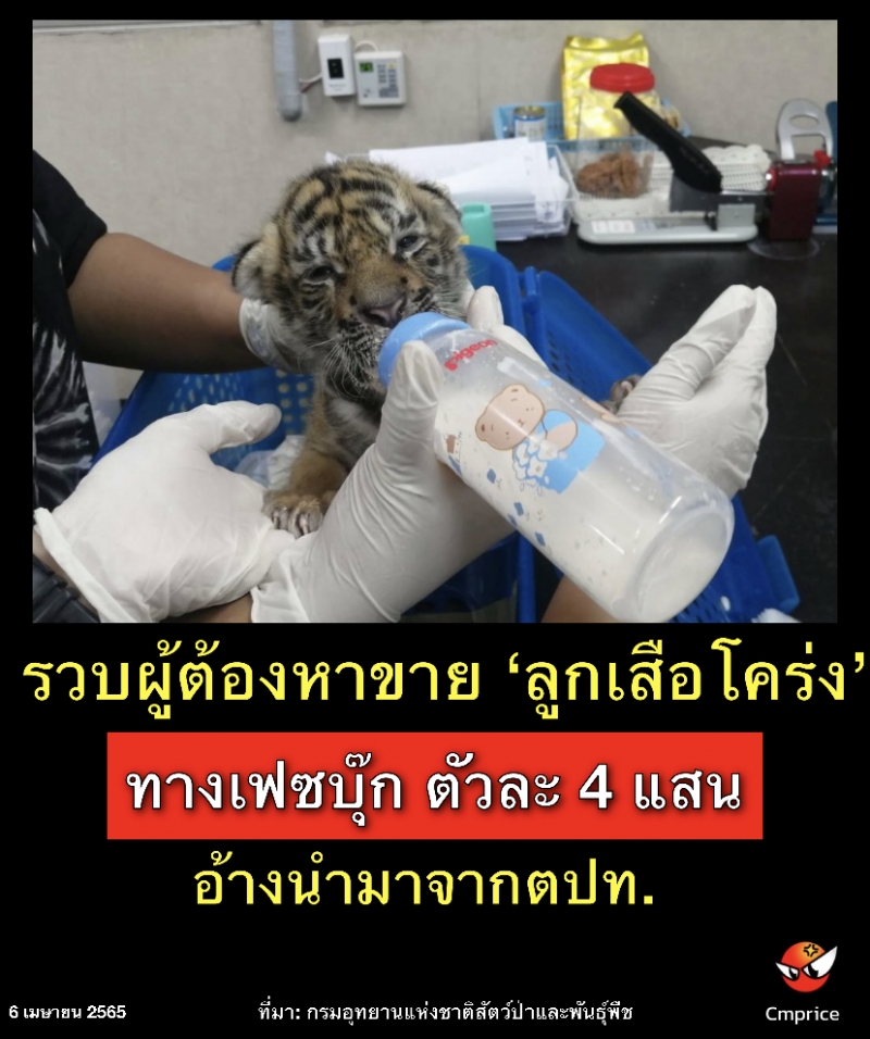 | • รวบผู้ต้องหาขาย ลูกเสือโคร่ง ทางเฟซบุ๊ก ตัวละ4แสน อ้างนำมาจากตปท. |