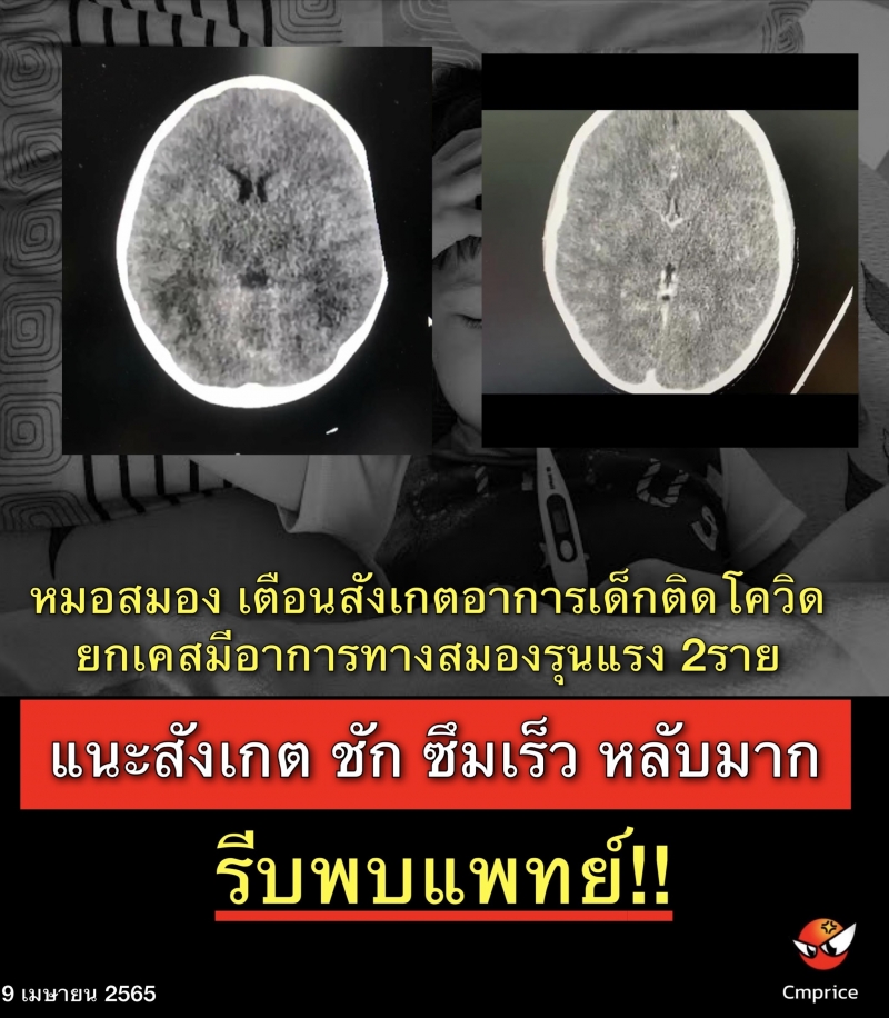 | • หมอสมอง เตือนสังเกตอาการเด็ก ติดโควิด ยกเคสมีอาการทางสมองรุนแรง 2ราย แนะสังเกต ชัก ซึมเร็ว หลับมาก รีบพบแพทย์ |