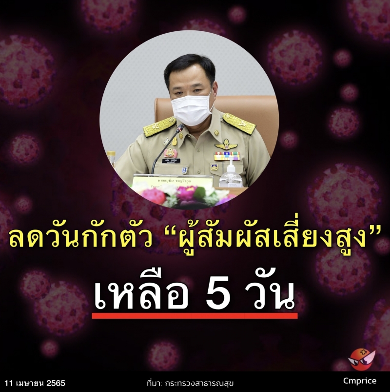 | • เห็นชอบ! ลดวันกักตัวผู้สัมผัสเสี่ยงสูง เหลือ 5 วัน |