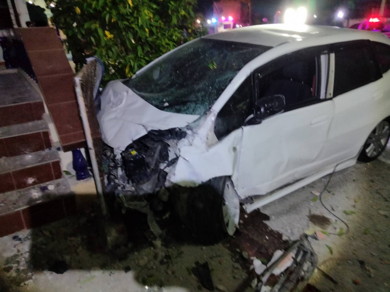 เมื่อรุ่งเช้าวันที่ 12เมษายน65 เวลา 04.30 น. เกิดเหตุรถเก๋งเสียหลักชนกำแพงบ้านประชาชน แล้วพุ่งไปชนบันไดหน้าบ้าน จนรถด้านหน้าพังยบ