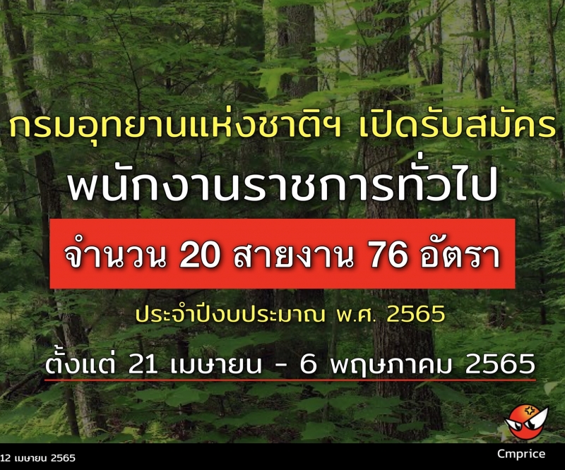 | • กรมอุทยานแห่งชาติฯ เปิดรับสมัครสอบ พนักงานราชการ ปี 2565 จำนวน 20 สายงาน 76 อัตรา |