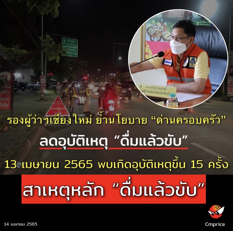 | • รองผู้ว่าฯ เชียงใหม่ ย้ำนโยบาย ด่านครอบครัว ลดอุบัติเหตุ ดื่มแล้วขับ |