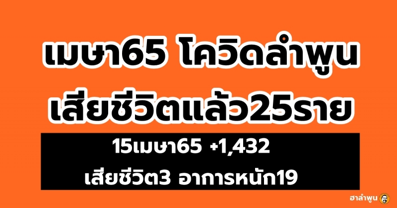 เมษาดุ!! โควิดลำพูน เสียชีวิตแล้ว25ราย ยังหนักอีก19ราย(15เมษา65 +1,432 ดับ3)