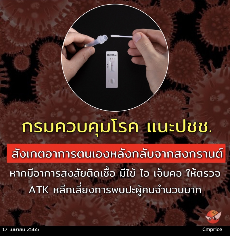| • กรมควบคุมโรค แนะประชาชน สังเกตอาการตนเองหลังกลับจากสงกรานต์ |