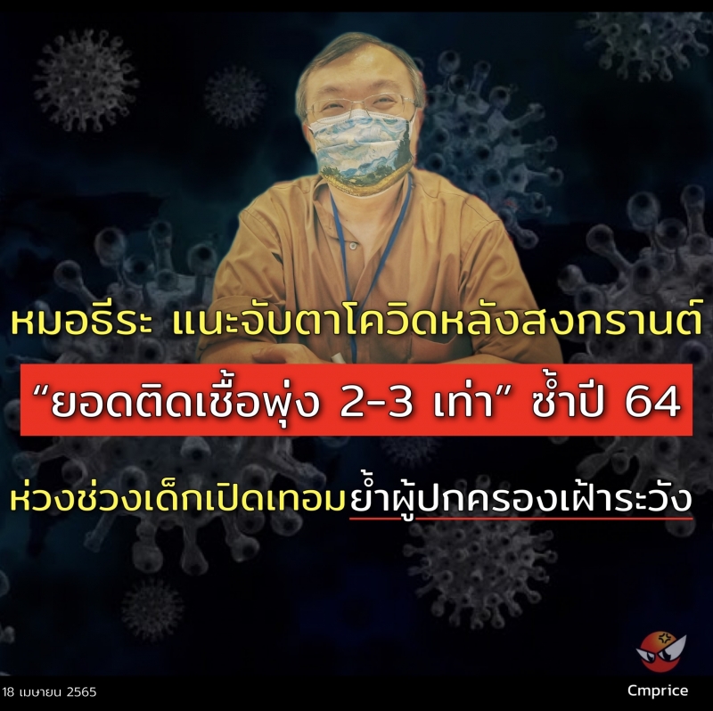 | • หมอธีระ แนะจับตา โควิดหลังสงกรานต์ยอดติดเชื้อพุ่ง 2-3 เท่า ซ้ำปี 64 |