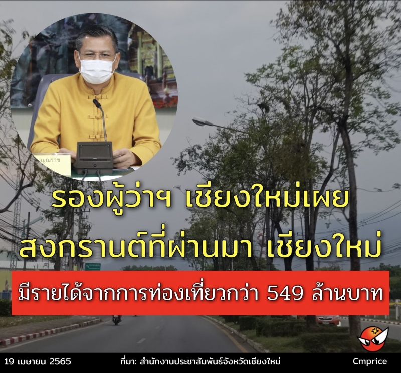 รองผู้ว่าฯ เชียงใหม่ เผยสงกรานต์ที่ผ่านมา เชียงใหม่มีรายได้จากการท่องเที่ยวกว่า 549 ล้านบาท