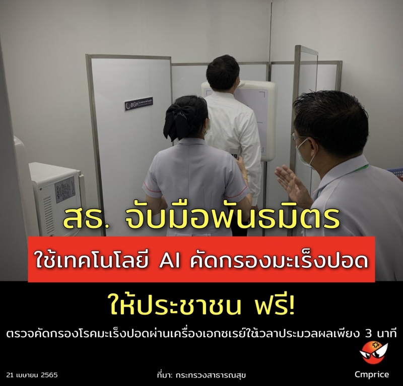 | • สธ.จับมือพันธมิตร ใช้เทคโนโลยี AI คัดกรองมะเร็งปอดให้ประชาชนในห้างสรรพสินค้า ฟรี! |