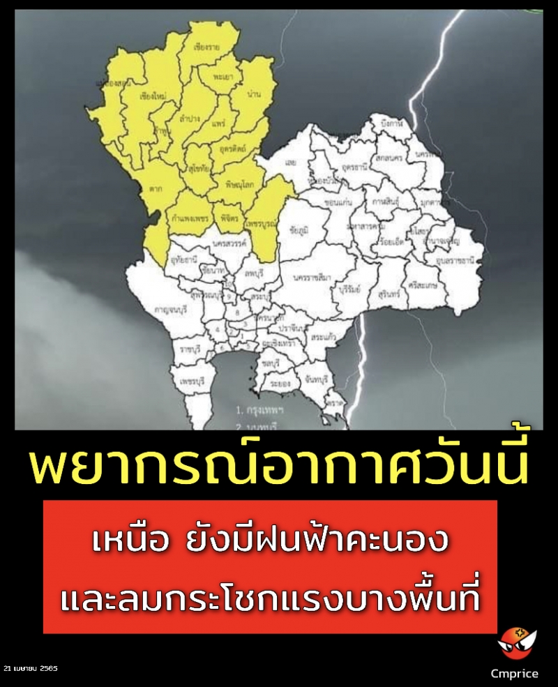 | • พยากรณ์อากาศวันนี้เหนือ ยังมีฝนฟ้าคะนองและลมกระโชกแรงบางพื้นที่ |