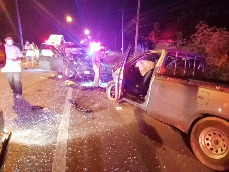 อุบัติเหตุ กลางดึกที่ผ่านมา กระบะชนกับกระบะ บาดเจ็บ3ราย