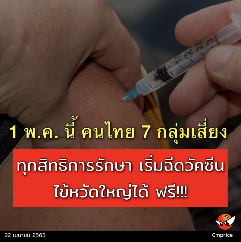 1 พ.ค. นี้ คนไทย 7 กลุ่มเสี่ยง ทุกสิทธิการรักษา เริ่มฉีดวัคซีนไข้หวัดใหญ่ได้ฟรี